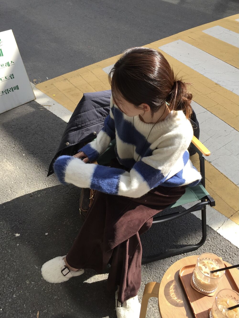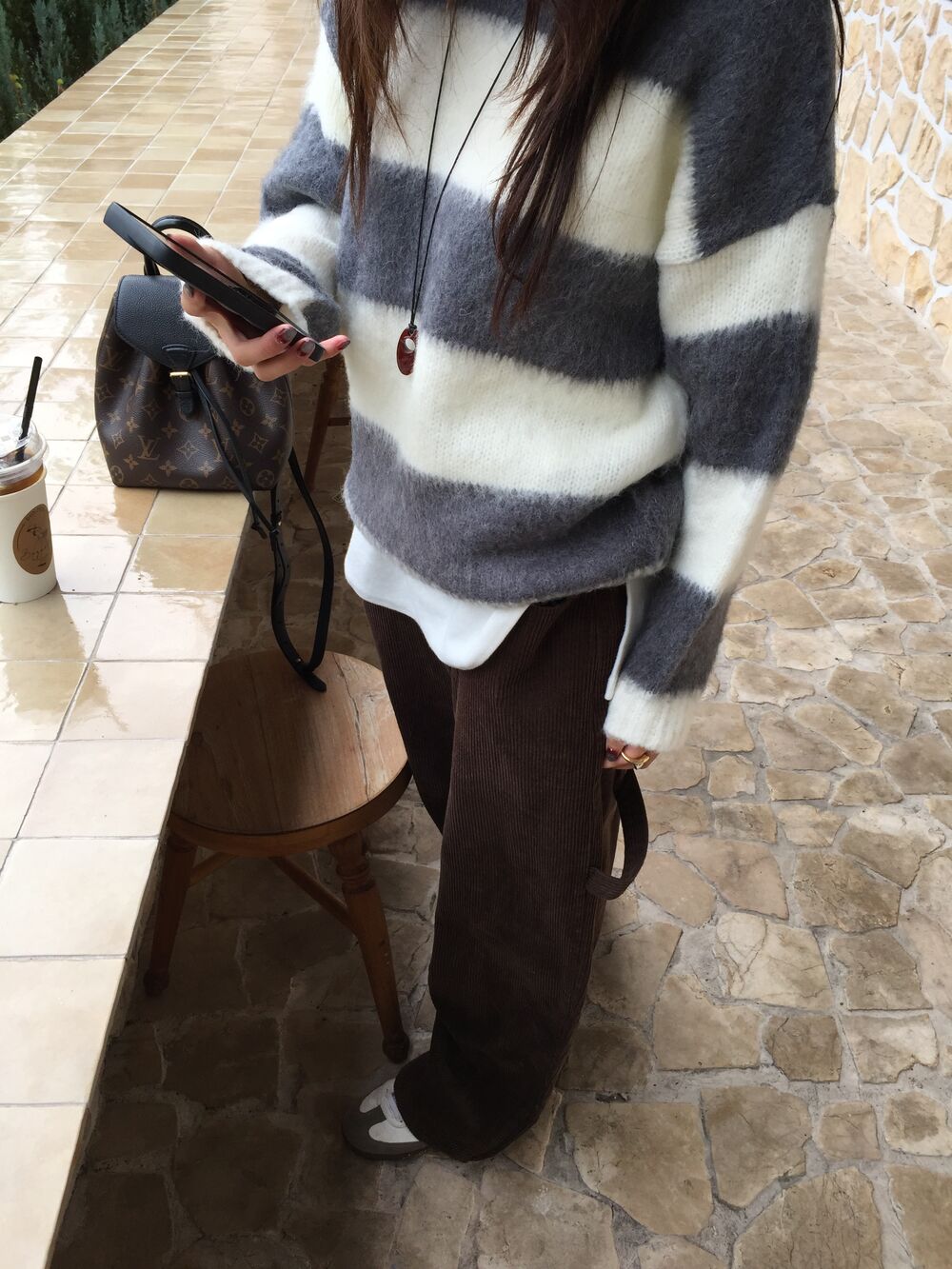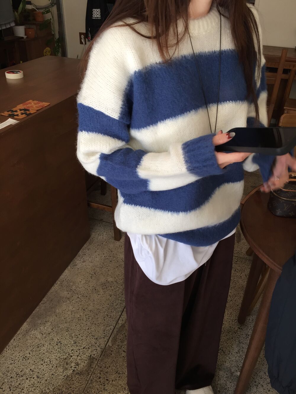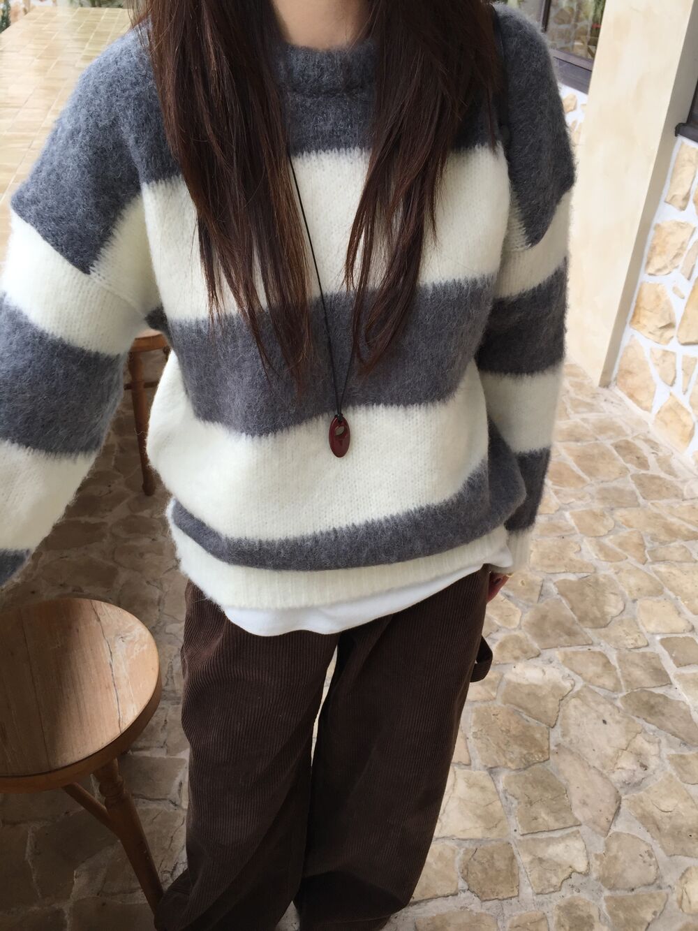 上品な気質を演出するおしゃれなボーダー柄ニットセーター。