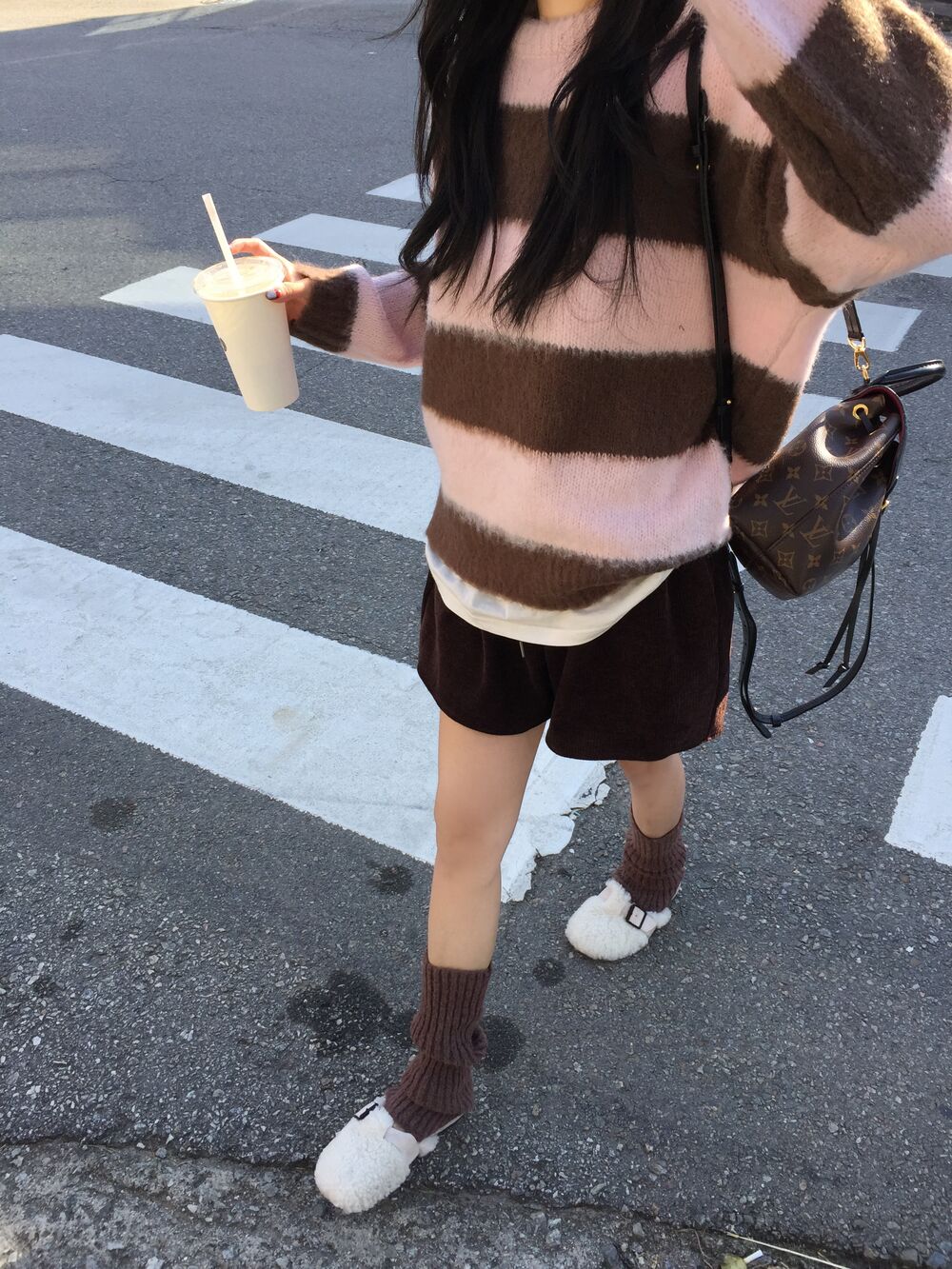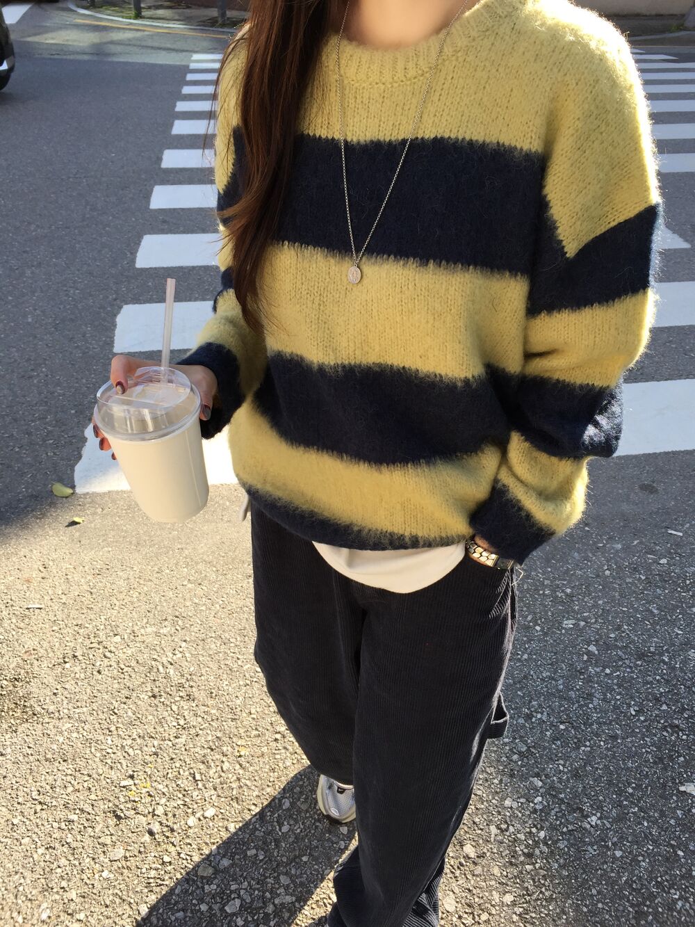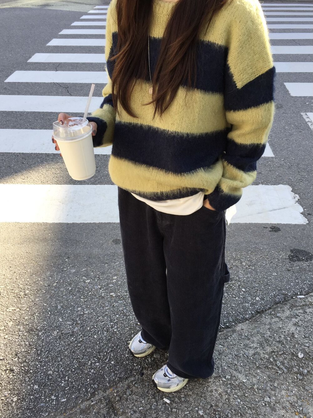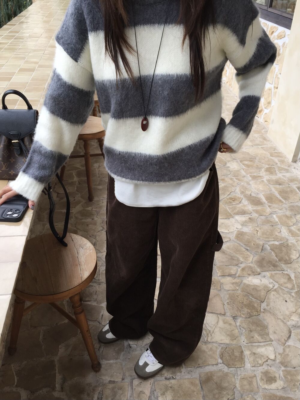 上品な気質を演出するおしゃれなボーダー柄ニットセーター。