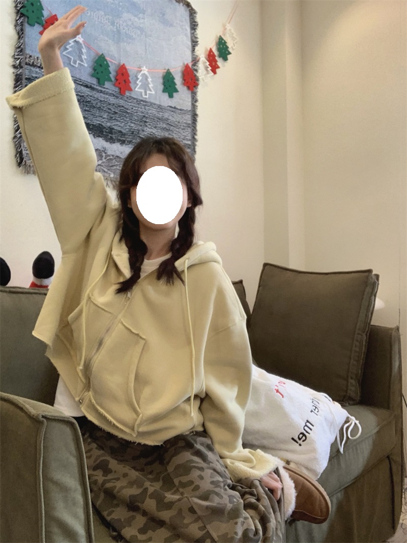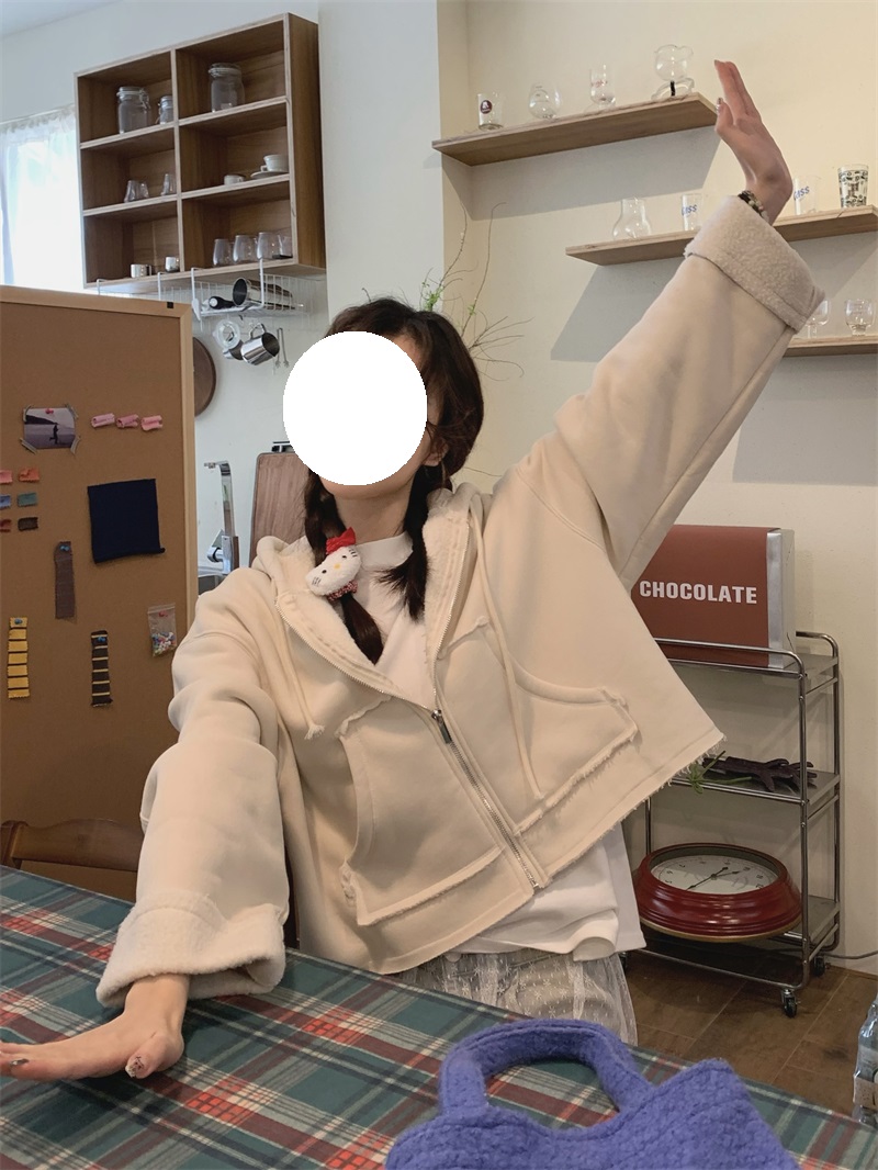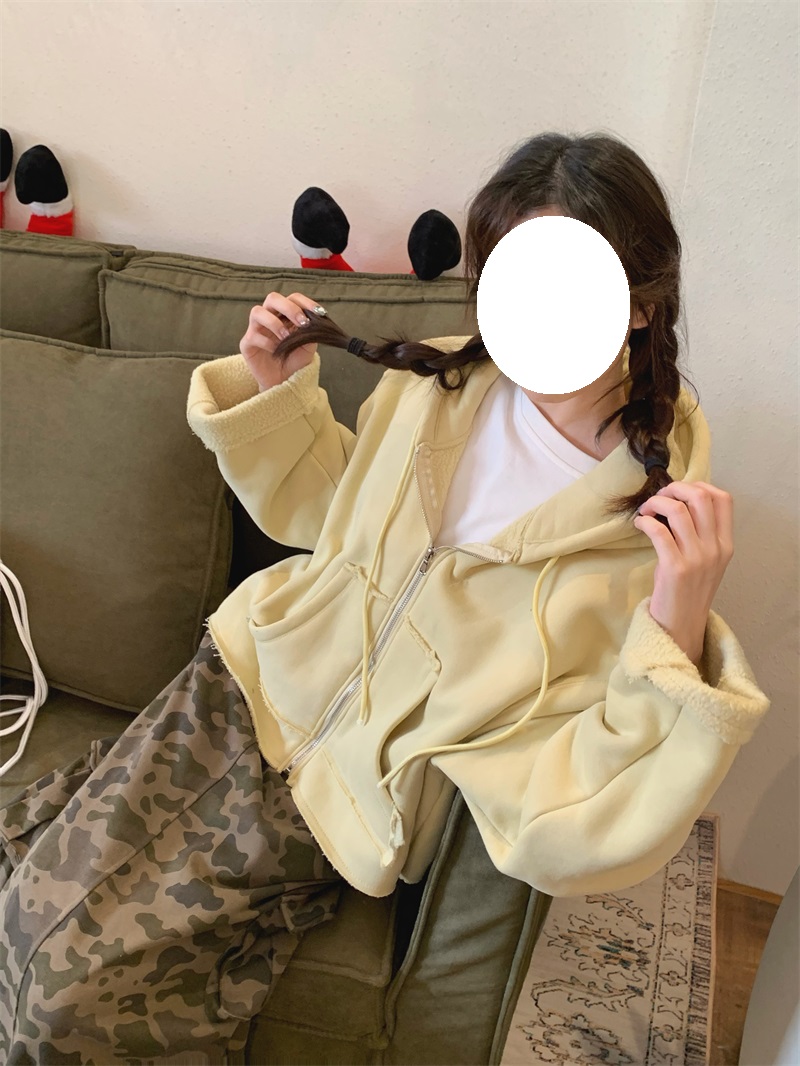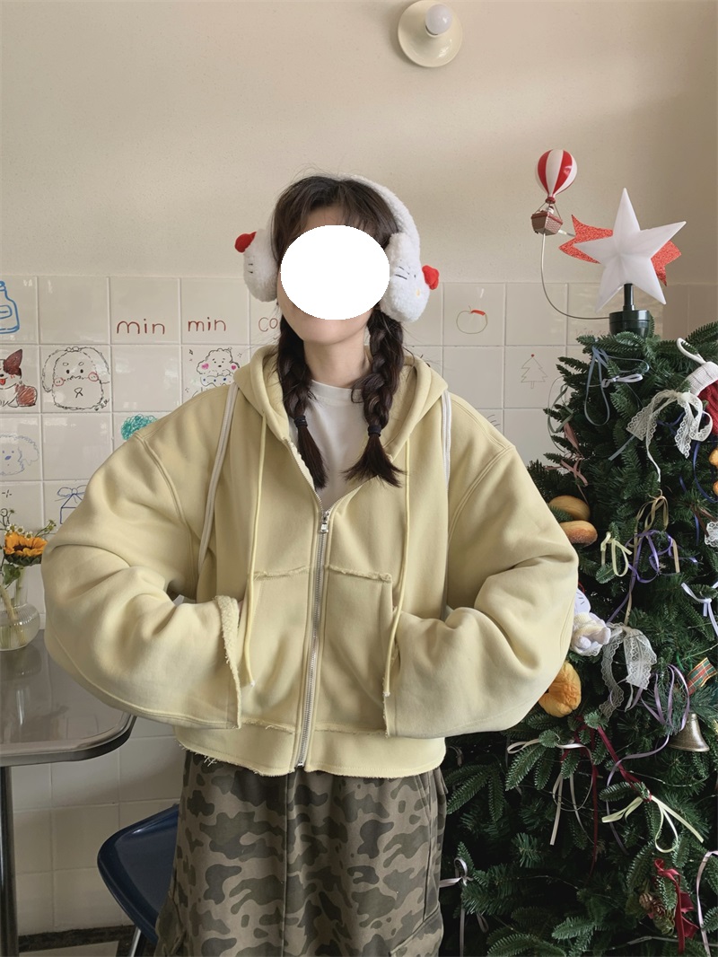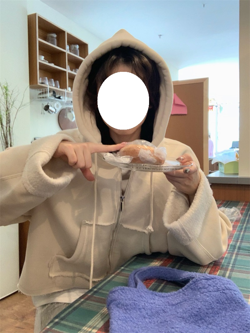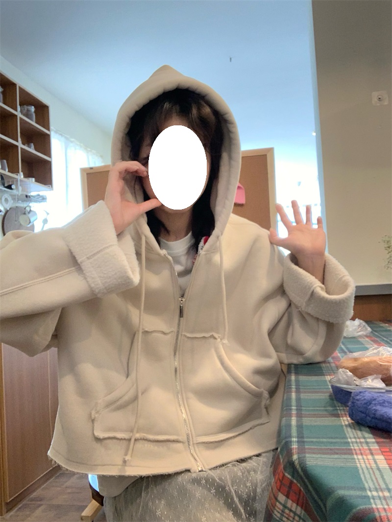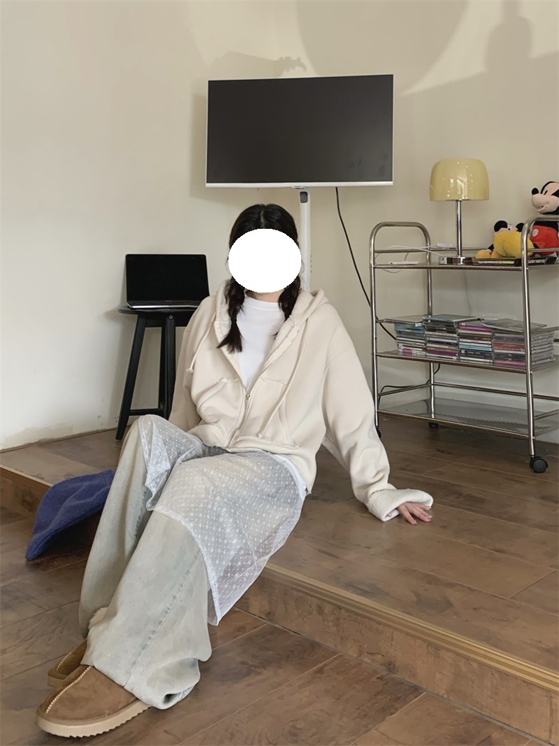ジップアップタイプで着脱しやすく、オーバーサイズのシルエットが今っぽい雰囲気を演出します。