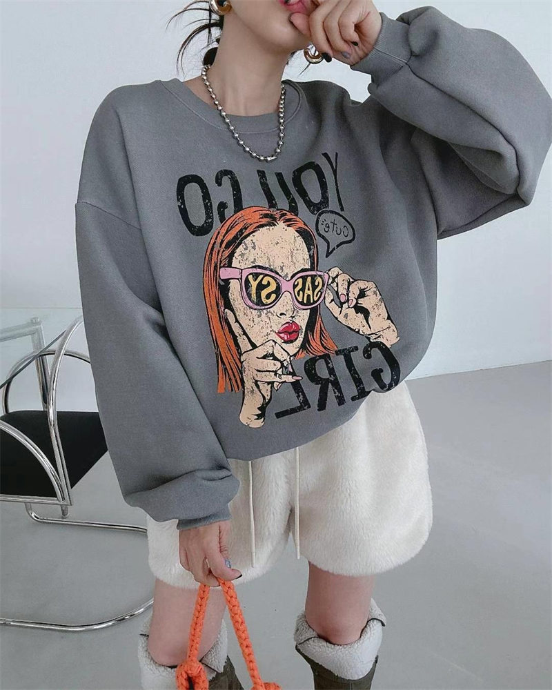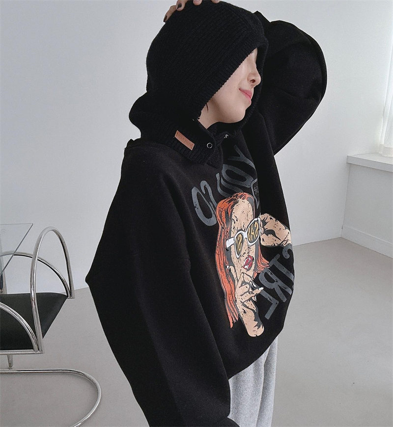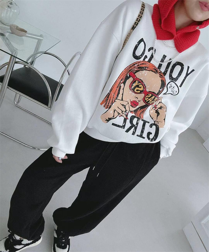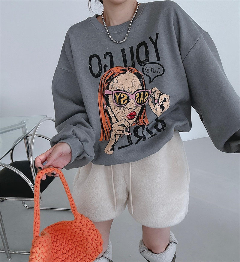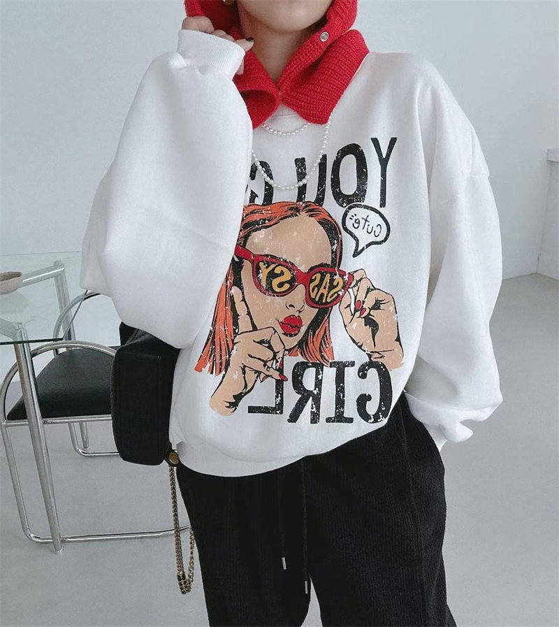 個性的なイラストプリントが印象的なレトロ風スウェット。