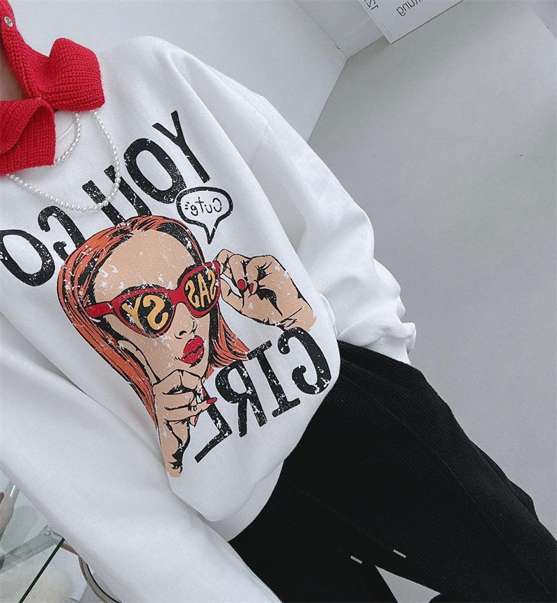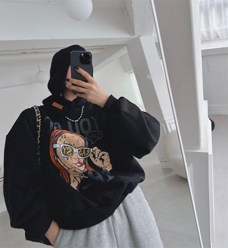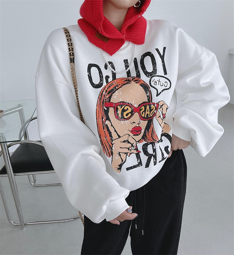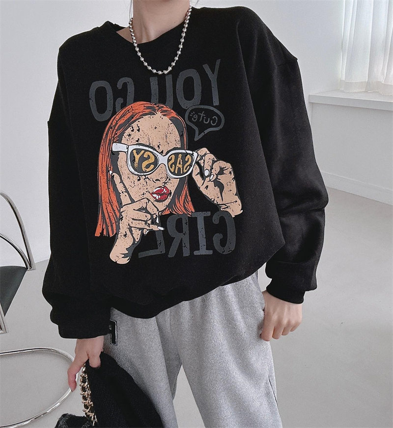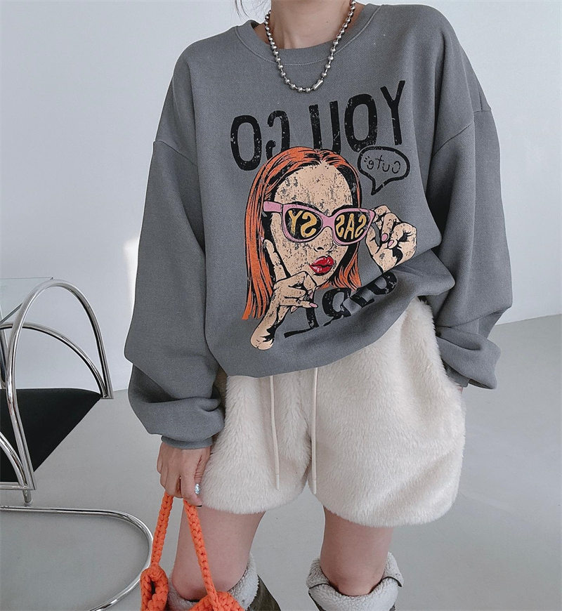 個性的なイラストプリントが印象的なレトロ風スウェット。